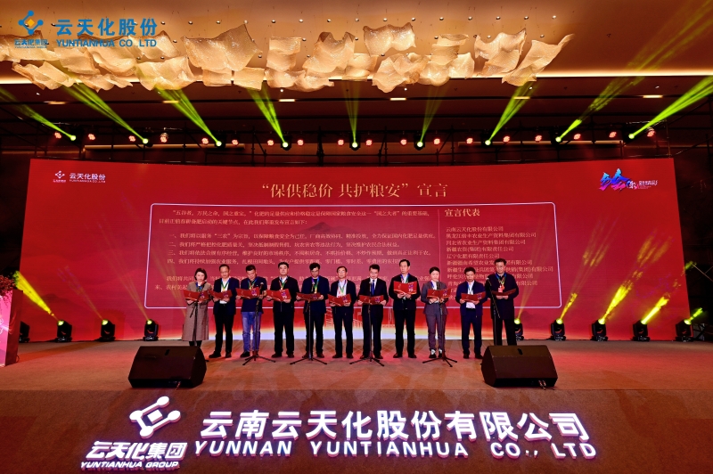 會(huì)上,由云南云天化股份有限公司發(fā)起,以黑龍江倍豐農(nóng)業(yè)生產(chǎn)資料集團(tuán)有限公司、河北省農(nóng)業(yè)生產(chǎn)資料集團(tuán)有限公司、新疆農(nóng)資(集團(tuán))有限責(zé)任公司、遼寧化肥有限責(zé)任公司、新疆疆南希望農(nóng)業(yè)發(fā)展集團(tuán)有限公司、新疆生產(chǎn)建設(shè)兵團(tuán)第一師供銷(集團(tuán))有限公司、呼倫貝爾農(nóng)墾物資石油集團(tuán)有限公司、呼倫貝爾農(nóng)墾物資石油集團(tuán)有限公司、青海農(nóng)牧生產(chǎn)資料(集團(tuán))股份有限公司、甘肅省農(nóng)資化肥有限責(zé)任公司、陜西農(nóng)科化肥有限公司為代表,全場(chǎng)嘉賓通過(guò)掃碼共同參與,發(fā)布了“保供穩(wěn)價(jià) 共護(hù)糧安”宣言,助力中國(guó)農(nóng)業(yè)強(qiáng)起來(lái)、農(nóng)村美起來(lái)、農(nóng)民富起來(lái),共同繪聚中國(guó)化肥的新精彩,共同繪聚中國(guó)農(nóng)業(yè)的新精彩!